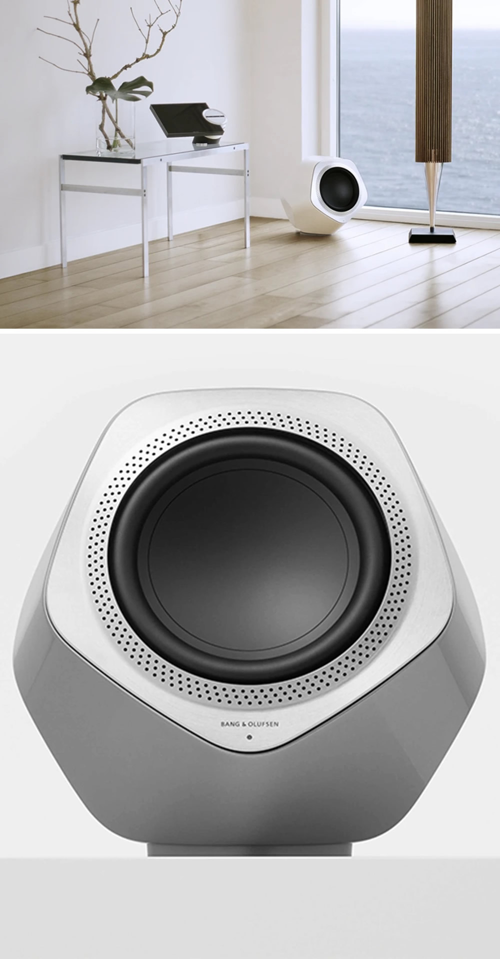 Beolab 19. Subwoofer wireless con bassi potenti e un design scultoreo, perfetto per il tuo salotto