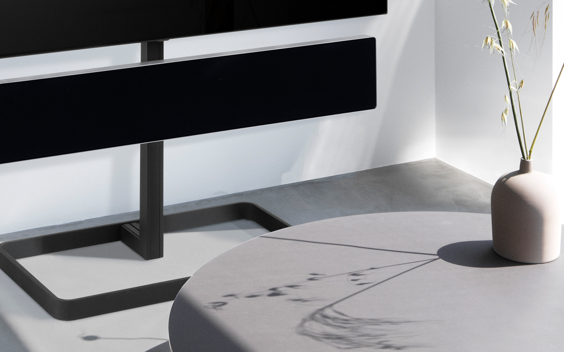 Una floorstand dedicato alla soundbar Beosound Stage (approfondisci) di Bang & Olufsen e qualsiasi tv.