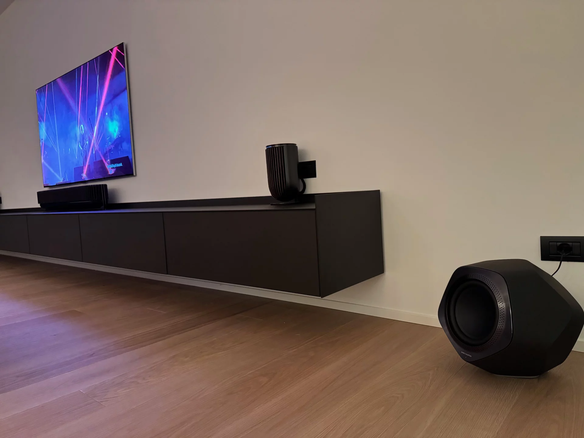 Nuova installazione a regola d’arte comprendente TV a grande schermo, Beosound Theatre, coppia di Beolab 8 e Beolab 19.