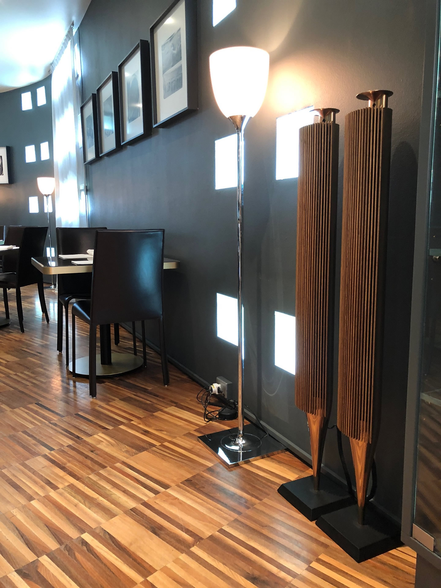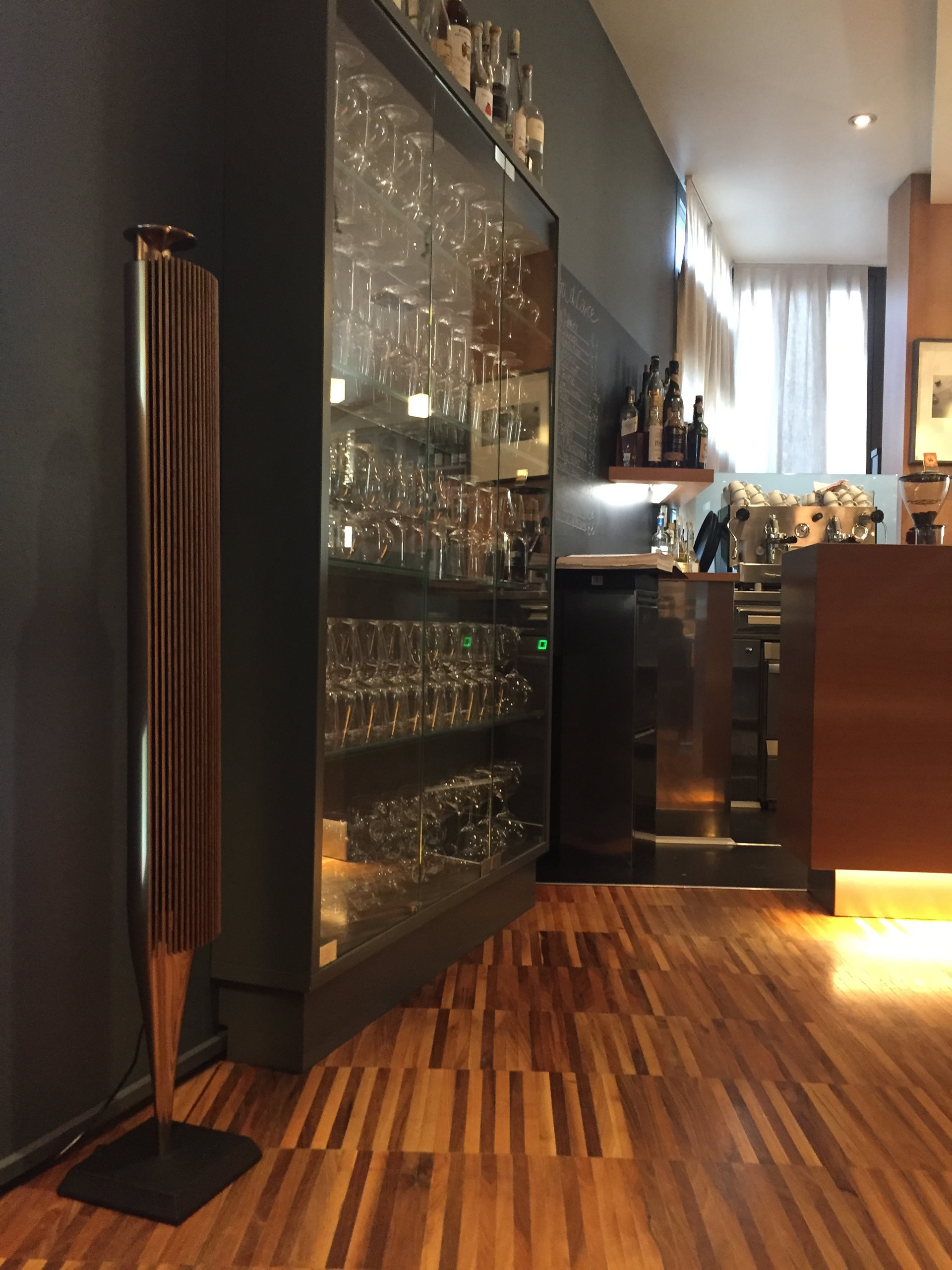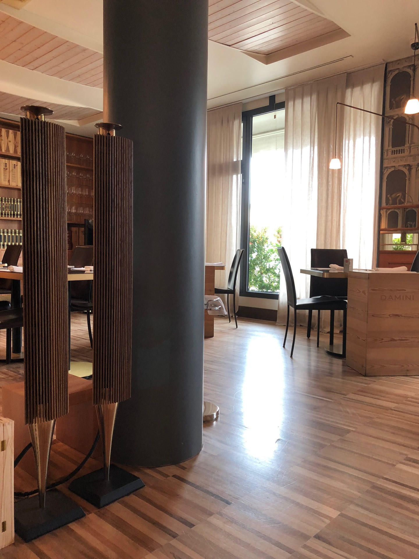 Presso il ristorante stellato Damini di Arzignano trovano spazio 2 meravigliose coppie di Beolab 18 in esclusiva finitura Brass sono controllate da un sistema audio multiroom Sonos.