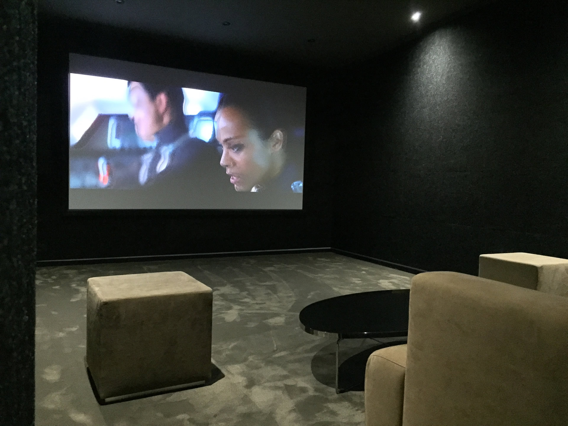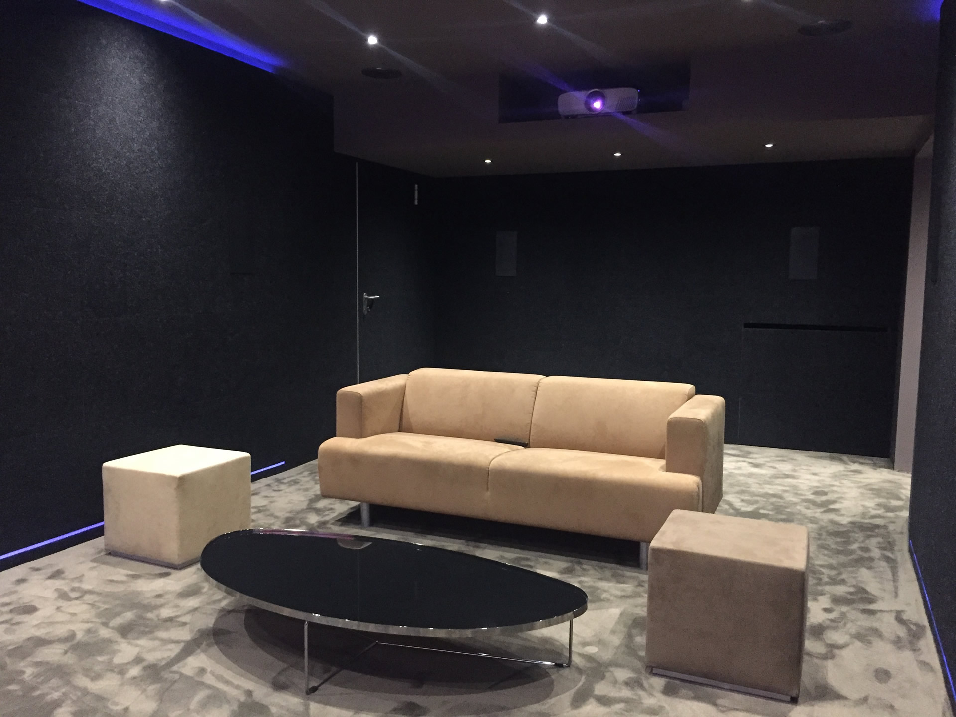 Progettazione e sviluppo di una sala cinema con codifica dolby Atmos a 12 canali audio e schermo da 130 pollici.
